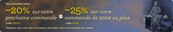 Insane savings! 20% off any order (code: JEKYLL) until October 26, 2012.
