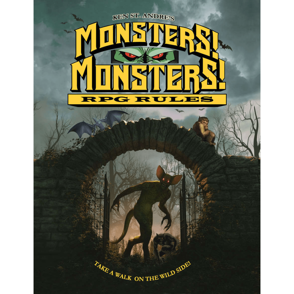 Ken St . Andre, par exemple, a rarement été aussi actif. Paradoxalement, le fait qu’il ait négocié avec Webbed Sphere le rachat de ses droits d’auteur l’a incité à développer Monsters! Monsters!, le soi-disant dérivé de Tunnels & Trolls qu’il avait créé dès 1976 de manière indépendante de Flying Buffalo. Il s’agit en fait d’un système de jeu presque identique à celui de Tunnels & Trolls, mais dans lequel on ne joue que des monstres (alors que, dans T&T, on peut jouer n’importe quelle espèce de personnage). Dans T&T, il peut y avoir un ou deux monstres dans un groupe d’aventuriers, mais ce n’est pas très courant, et on n’utilise généralement pas non plus n’importe quel monstre, mais plutôt des humanoïdes. Dans Monsters! Monsters! au contraire, jouer un monstre (n’importe lequel) est la règle !
